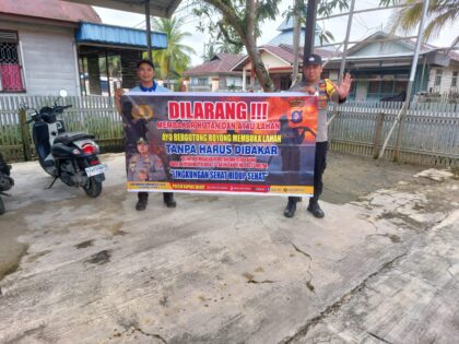 Tribratanews.kalteng.polri.go.id-Kapuas Hulu-Kegiatan sosialisasi dan imbauan larangan membakar hutan dan lahan dengan menggunakan spanduk yang berisi...
