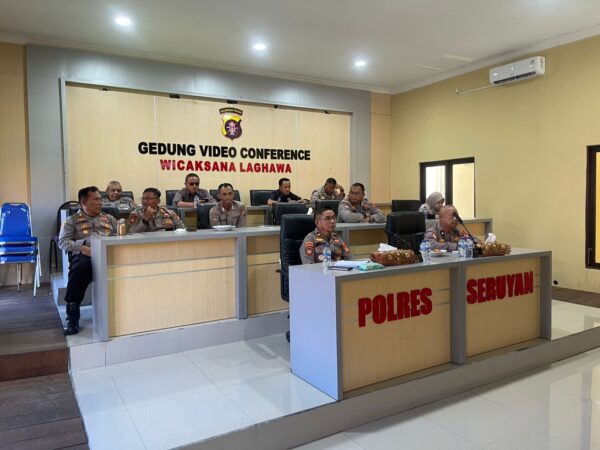 Polres Seruyan, 9 April 2026 – Jajaran Polres Seruyan mengikuti kegiatan Zoom Meeting Video Conference (Vicon) Anev Akselerasi Transformasi