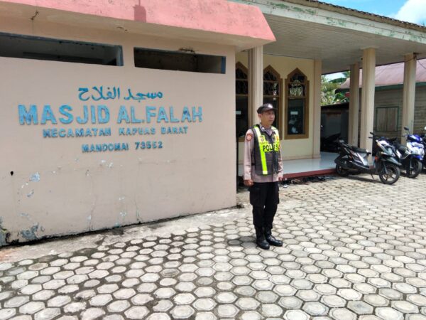 MANDOMAI – Personel Polsek Kapuas Barat kembali melaksanakan pengamanan rutin ibadah salat Jumat di Masjid Al-Falah, Kelurahan Mandomai, Kecamatan