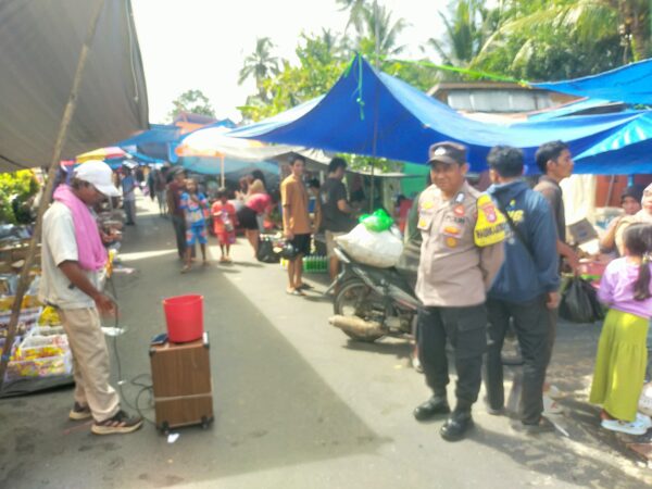 MANDOMAI – Personel Polsek Kapuas Barat melaksanakan patroli dialogis di kawasan pasar mingguan Kelurahan Mandomai, Kecamatan Kapuas Barat, pada