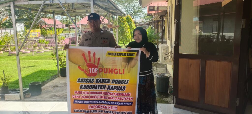 “Kami minta agar seluruh masyarakat segera menghubungi tim saber pungli jika melihat, mendengar atau mengetahui adanya tindakan pungutan liar ” kata Ipda Prasetyo Lami, S.E selaku Kapolsek Kapuas Barat.