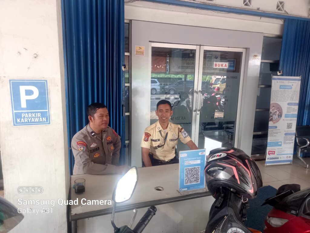 LEBAK,-Bhabinkamtibmas Polsek Rangkasbitung Polres Lebak,AIPDA Turas Catur, sampaikan pesan Kamtibmas kepada Satpam kantor pelayanan umum FIF.