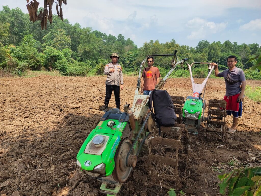 LEBAK-Kapolsek Rangkasbitung Polres Lebak AKP Adi Irawan, SH,melalui Bhabinkamtibmas Polsek Rangkasbitung AIPDA AK.Nurdin,turunkan dua traktor untuk pengolahan lahan yang akan di tanami jagung hibrida.