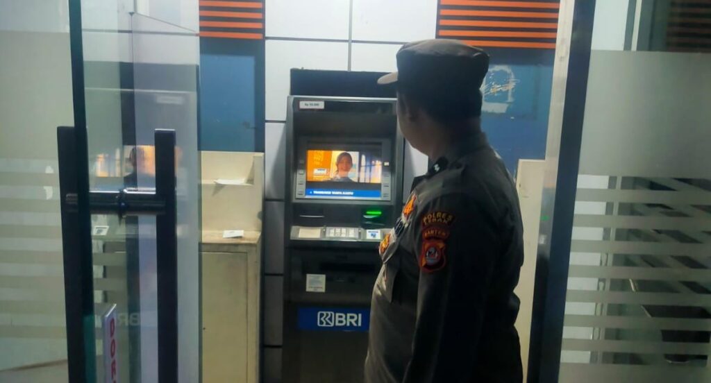 LEBAK-Sabhara Polsek Rangkasbitung Polres Lebak AIPTU Terry.M.S dan BRIGPOL Imam Solichin,melaksanakan giat patroli dialogis cek mesin ATM Center Bank BRI.Rabu malam 13 Agustus 2025,pukul.23.45 Wib.