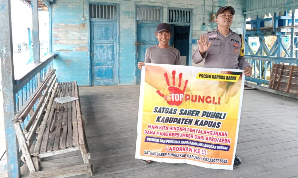 Pungli adalah Pengenaan biaya atau pungutan di tempat yang seharusnya tidak ada biaya dikenakan atau dipungut dilokasi atau pada kegiatan tersebut tidak sesuai ketentuan. Polsek Kapuas Barat melalui Bhabinkamtibmas melakukan himbauan Kamtibmas kepada masyarakat untuk mensosialisasikan tentang Sapu Bersih Pungutan Liar (Saber Pungli) di Kecamatan Kapuas Barat Kabupaten Kapuas.