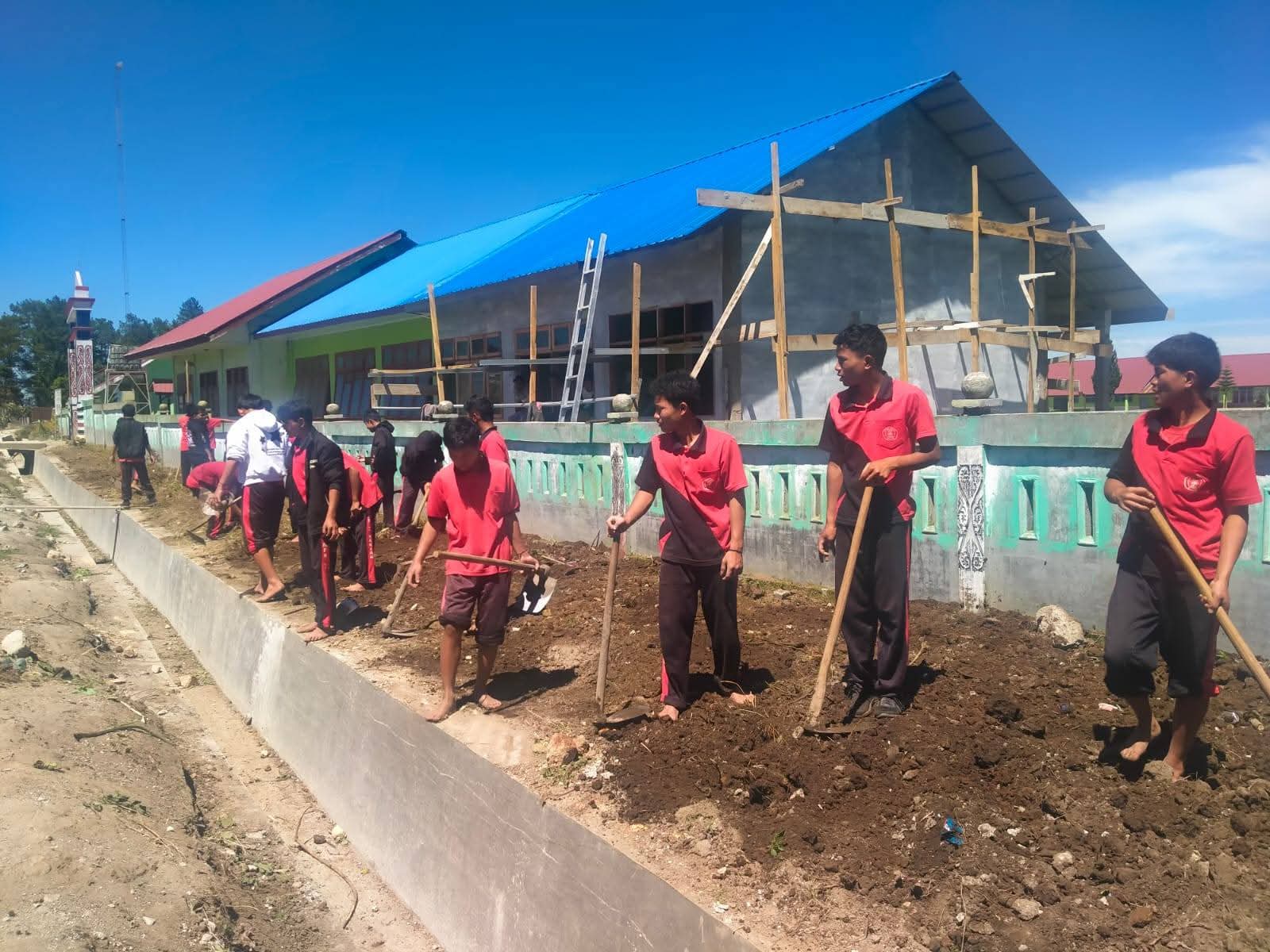 Samosir- Di Awal Bulan Nopember 2025 Para Siswa – Siswi SMP Negeri 3 Harian Kabupaten Samosir Melakukan gotong royong untuk Membersihkan Pekarangan, Halaman Sekolah Pada Senin 03/11/2025.