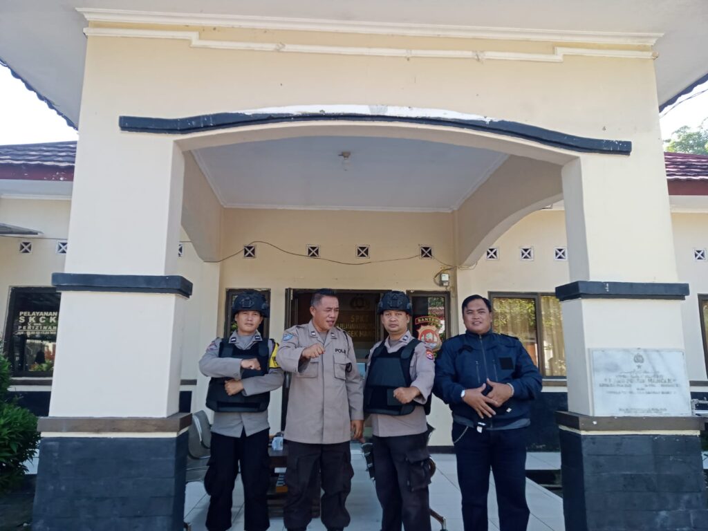 “Anggota piket jaga Polsek Mancak melaksanakan Sispam Mako dilengkapi dengan bodyvest, helm kevlar, dan senjata api salah satu upaya peningkatan kemanan mako guna mencegah hal-hal yang tidak dapat di duga selama pelayan berlangsung.”