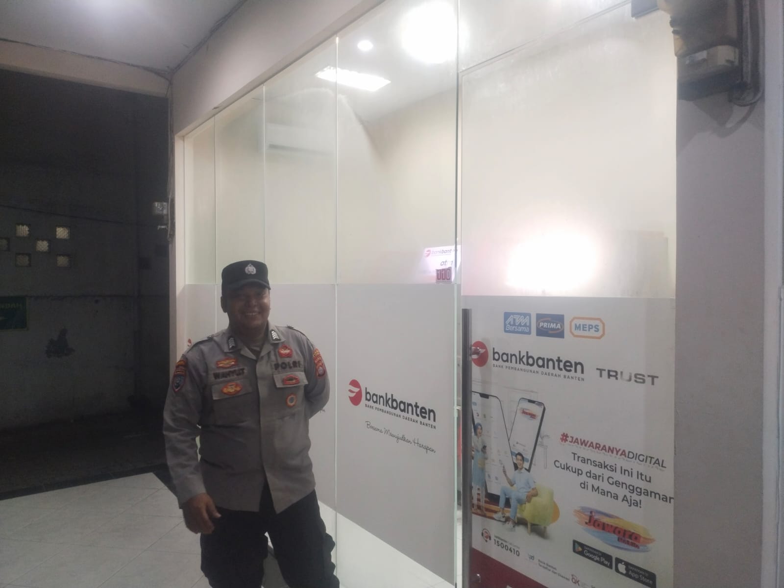 “Patroli dialogis dan kontrol ATM Bank Banten rutin dilaksanakan dalam rangka menjaga keamanan dan kewaspadaan di Wilayah Hukum Polsek Rangkasbitung, selanjutnya anggota patroli juga memberikan himbauan kepada Satpam Bank Banten.