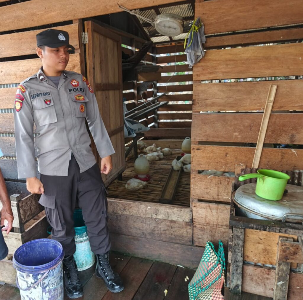 Anggota Polsek Kapuas Tengah Melaksanakan Pengecekan Pekarangan hewan milik warga Desa Jangkang