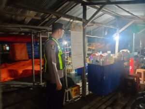 Terlihat saat patroli malam, anggota piket Polsek Mantangai melakukan patroli di warung warung kecil dan pemukiman penduduk Kecamatan Mantangai, Sabtu (28/03/2026) Malam.