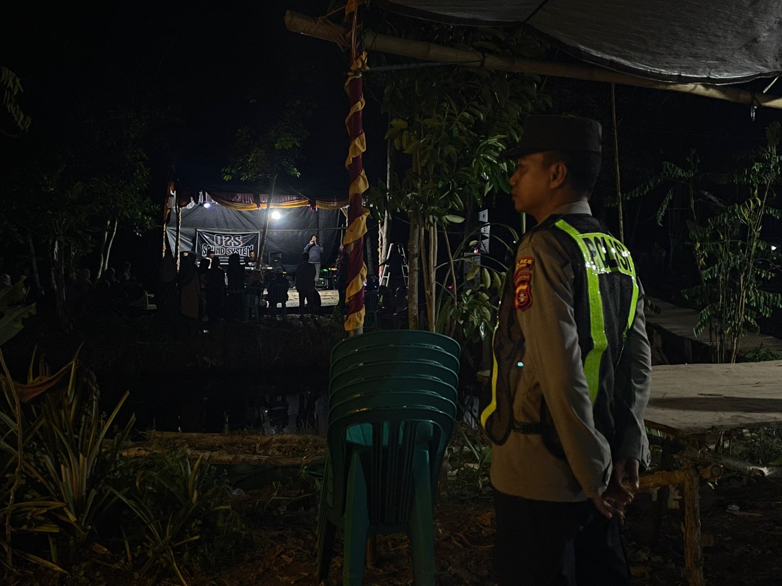 Terlihat saat patroli malam, anggota piket Polsek Pulau Petak melakukan patroli di warung warung kecil dan pemukiman penduduk Kecamatan Pulau Petak, Sabtu (04/04/2026) Malam