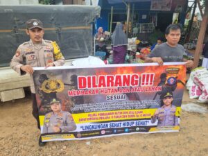“Kegiatan sosialisasi dan imbauan larangan membakar hutan dan lahan dengan menggunakan spanduk yang berisi tentang sanksi dan pidana buka lahan dengan cara membakar, sesuai dengan pasal 187 dan pasal 188 KUHP, pasal 78 UU RI Nomor 41 Tahun 1999 tentang kehutanan, pasal 99 ayat (1), pasal 108, pasal 116, pasal 118, dan pasal 119 UU RI Nomor 32 Tahun 2009 tentang lingkungan hidup, pasal 108 UU RI Nomor 39 Tahun 2014 tentang perkebunan, pasal 27 Perda Prov. Kalteng Nomor 1 Tahun 2020 tentang pengendalian karhutla, pelaku pembakaran lahan dan hutan dapat di pidana penjara 15 Tahun dan denda 15 milyar”, tegasnya. (@13)