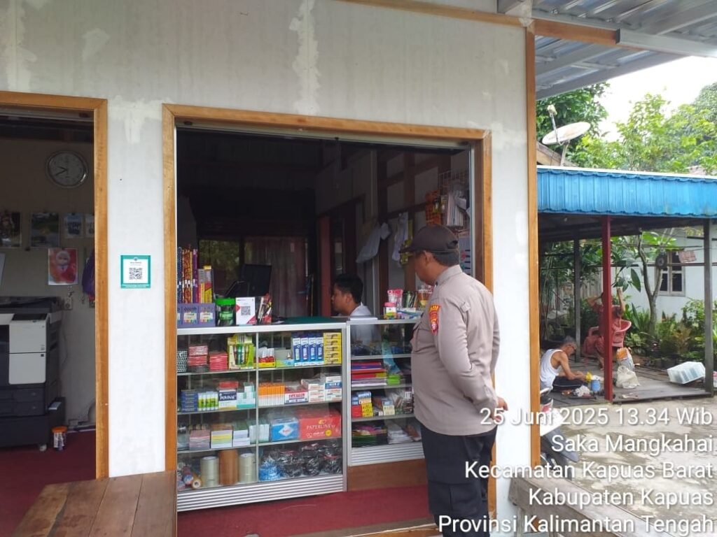 Guna memberikan motivasi dan sampaikan pesan Kamtibmas, Personil Polsek Kapuas Barat Aiptu Abu. J dan Aiptu Faisal. R melakukan patroli dialogis dalam rangka Harkamtibmas dengan mendatangi warga Kelurahan Mandomai, Rabu (25/06/2025) Siang.