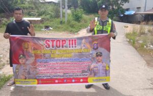 Personel Polsek Kapuas Hulu Polres Kapuas Aipda Simpang L. S. Purba dan Aiptu Setiawan C.M., S.H. melaksanakan sosialisasi menggunakan spanduk yang berbunyi Stop Penambangan Liar Dan Penggunaan Bahan Kimia Merkuri di Desa Sei Hayo Kecamatan Kapuas Hulu Kabupaten Kapuas Provinsi Kalimantan Tengah, Selasa (21/04/2026) pukul 09.30 Wib.