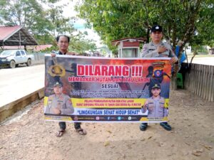 “Kegiatan sosialisasi dan imbauan larangan membakar hutan dan lahan dengan menggunakan spanduk yang berisi tentang sanksi dan pidana buka lahan dengan cara membakar, sesuai dengan pasal 187 dan pasal 188 KUHP, pasal 78 UU RI Nomor 41 Tahun 1999 tentang kehutanan, pasal 99 ayat (1), pasal 108, pasal 116, pasal 118, dan pasal 119 UU RI Nomor 32 Tahun 2009 tentang lingkungan hidup, pasal 108 UU RI Nomor 39 Tahun 2014 tentang perkebunan, pasal 27 Perda Prov. Kalteng Nomor 1 Tahun 2020 tentang pengendalian karhutla, pelaku pembakaran lahan dan hutan dapat di pidana penjara 15 Tahun dan denda 15 milyar”, tegasnya. (@13)