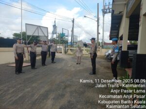 Apel pagi hari ini, Kamis (11/12/2025) pukul 08.00 wita dilaksanakan di halaman mako Polsek Kapuas Timur, dipimpin oleh Kapolsek Kapuas Timur Iptu Gendee, S.H., M.A. Turut hadir dalam kegiatan Wakapolsek Kapuas Timur Iptu Mawardi beserta anggota Polsek Kapuas Timur.