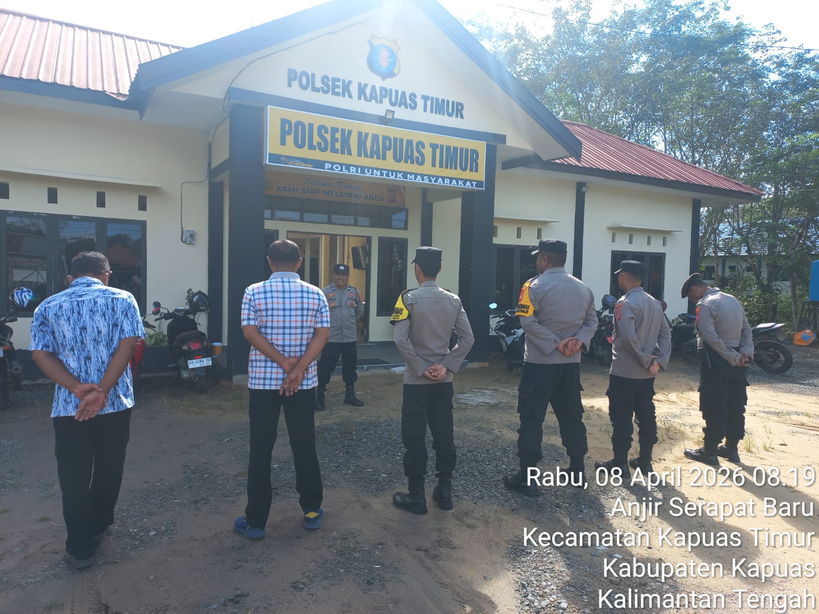 ‎Polsek Kapuas Timur– Bertempat di Mako Polsek Kapuas Timur, Kapolsek Kapuas Timur  Pimpin apel pagi anggotanya, sebagai bentuk komunikasi dua arah antara pimpinan dan seluruh anggota,Rabu (08/04/2026).