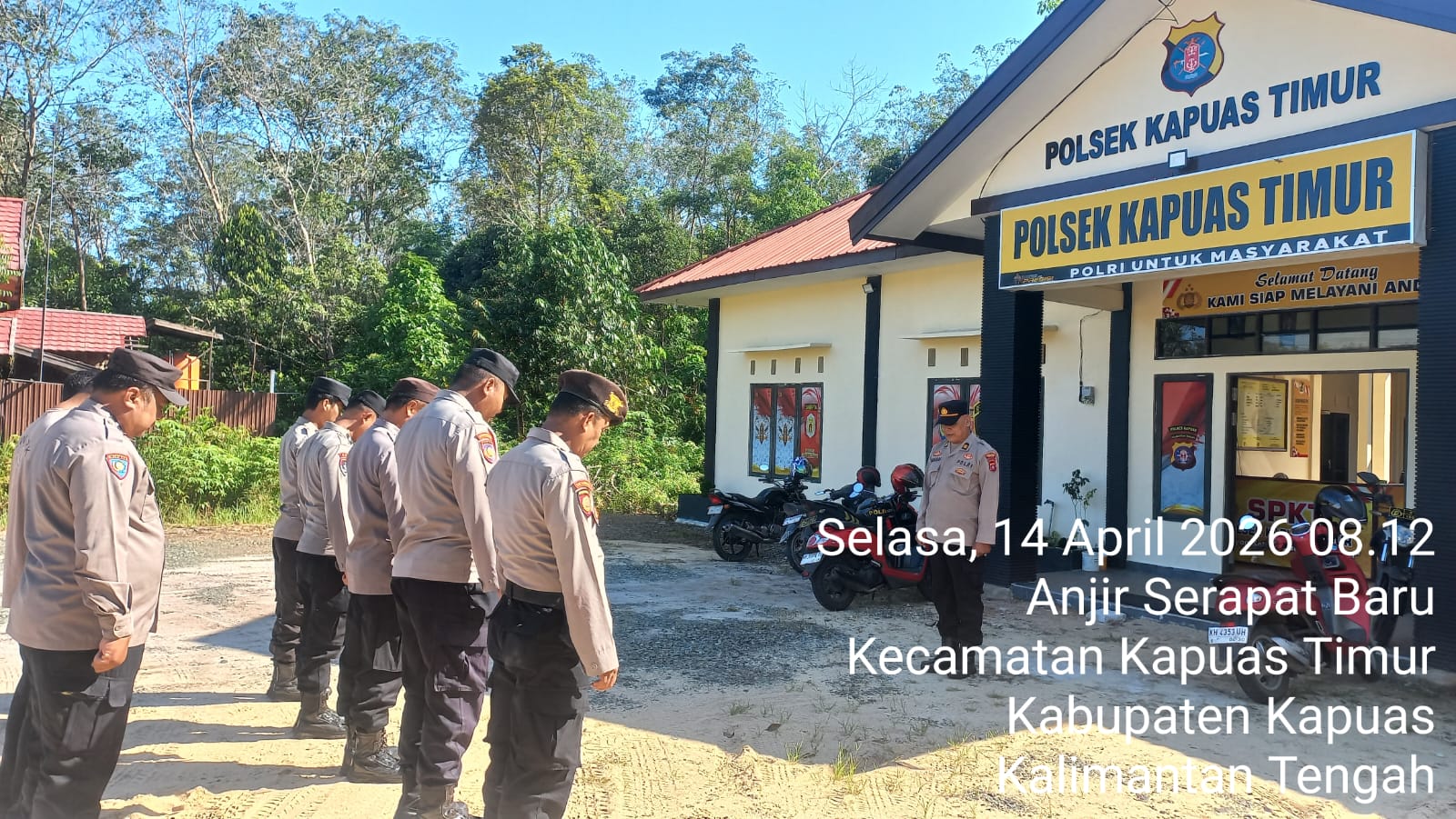 Polsek Kapuas Timur– Bertempat di Mako Polsek Kapuas Timur, Kapolsek Kapuas Timur Pimpin apel pagi anggotanya, sebagai bentuk komunikasi dua arah antara pimpinan dan seluruh anggota,Selasa (14/04/2026).