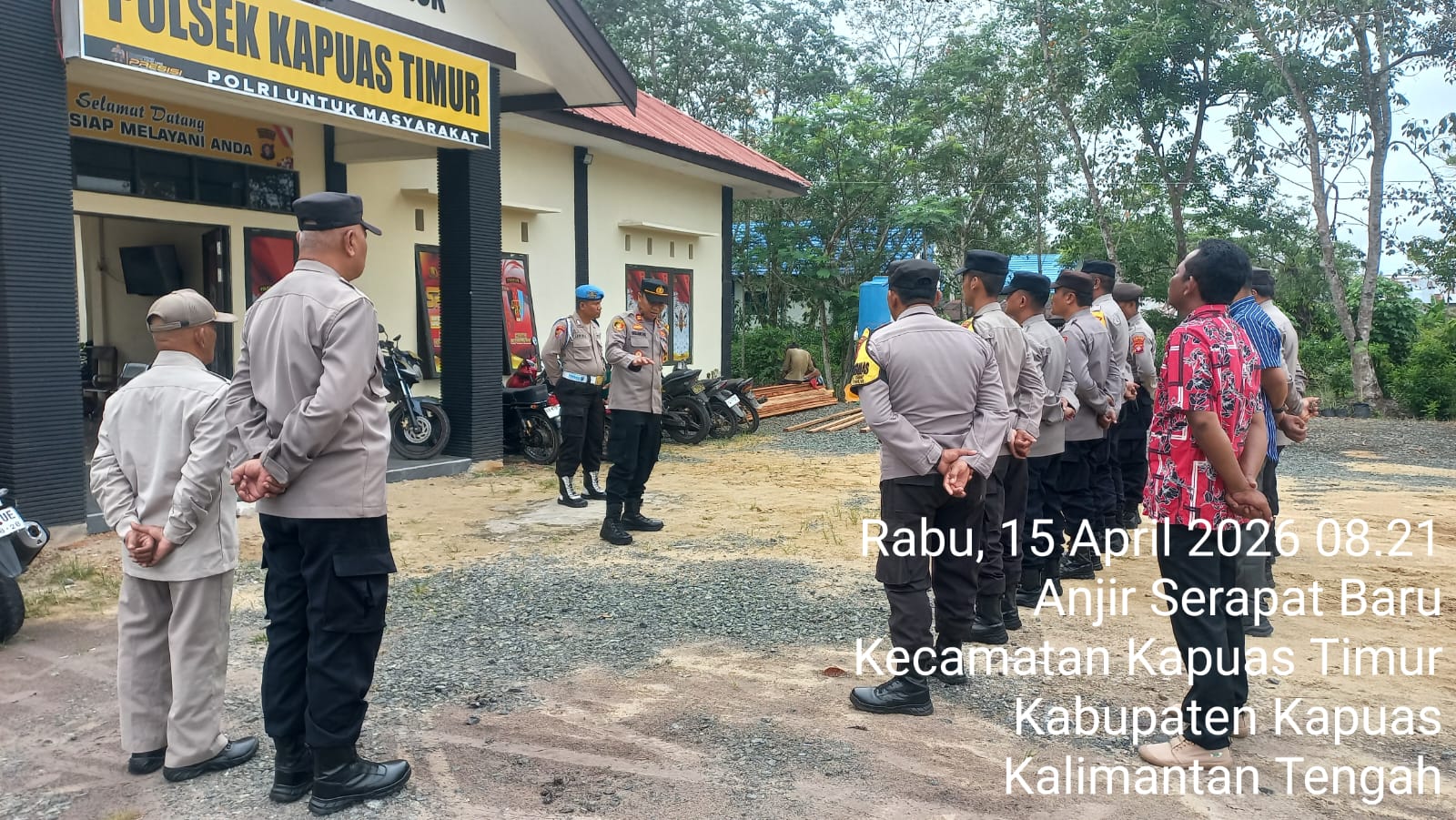 ‎Polsek Kapuas Timur– Bertempat di Mako Polsek Kapuas Timur, Kapolsek Kapuas Timur  Pimpin apel pagi anggotanya, sebagai bentuk komunikasi dua arah antara pimpinan dan seluruh anggota,Rabu (15/04/2026).
