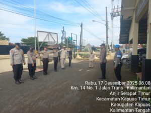 Apel pagi pada Rabu (17/12/2025) pukul 07.30 Wib berlangsung di halaman mako Polsek Kapuas Timur Jalan Trans Kalimantan Km. 14 Kecamatan Kapuas Timur Kabupaten Kapuas Provinsi Kalimantan Tengah dipimpin oleh Wakapolsek Kapuas Timur Iptu A. Ritonga.