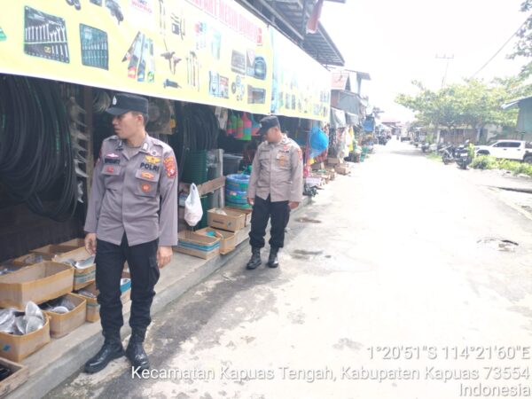 Personil polsek kapuas tengah lakuakan rutin Patroli ke pasar harian Pujon desa Pujon. Tribratanews.kalteng.polri.go.id – Polsek Kapuas tengah jajaran