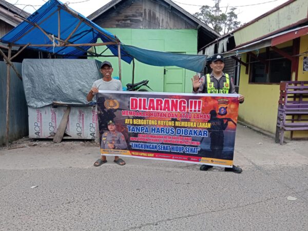 KAPUAS BARAT – Memasuki musim yang rentan terhadap kebakaran hutan dan lahan (Karhutla), personel Polsek Kapuas Barat secara masif