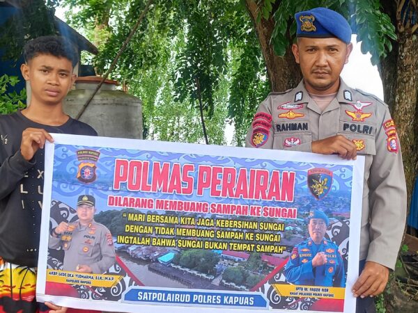 Satpolairud Polres Kapuas jajaran Polda Kalteng imbau masyarakat agar tidak membuang sampah ke sungai kabupaten Kapuas, Kalimantan Tengah, Minggu