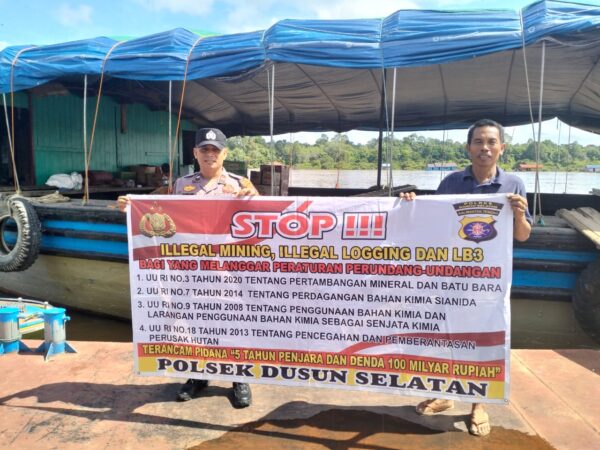 Polres Barsel – Mencegah terjadinya Penambangan Liar serta penyalahgunaan dan peredaran bahan-bahan kimia dikalangan masyarakat, Personel Polsek Karau Kuala,