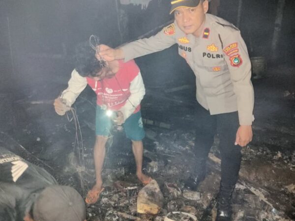 Polsek Simpang Teritip, Polres Bangka Barat, menangani peristiwa kebakaran rumah milik warga yang terjadi di Dusun II, Desa Pangek,