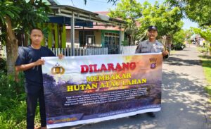 Bentang Sepanduk Larangan Membakar Hutan Dan Lahan Personil Polsek Kapuas Murung Melalui Giat Sosialisasi Karhutla