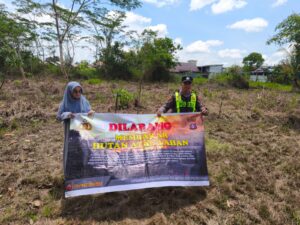 Bentang Sepanduk Larangan Membakar Hutan Dan Lahan Personil Polsek Kapuas Murung Melalui Giat Sosialisasi Karhutla