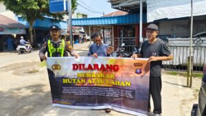 Bentang Sepanduk Larangan Membakar Hutan Dan Lahan Personil Polsek Kapuas Murung Melalui Giat Sosialisasi Karhutla