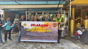 Bentang Sepanduk Larangan Membakar Hutan Dan Lahan Personil Polsek Kapuas Murung Melalui Giat Sosialisasi Karhutla