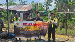 Bentang Sepanduk Larangan Membakar Hutan Dan Lahan Personil Polsek Kapuas Murung Melalui Giat Sosialisasi Karhutla
