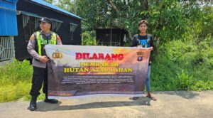 Bentang Sepanduk Larangan Membakar Hutan Dan Lahan Personil Polsek Kapuas Murung Melalui Giat Sosialisasi Karhutla