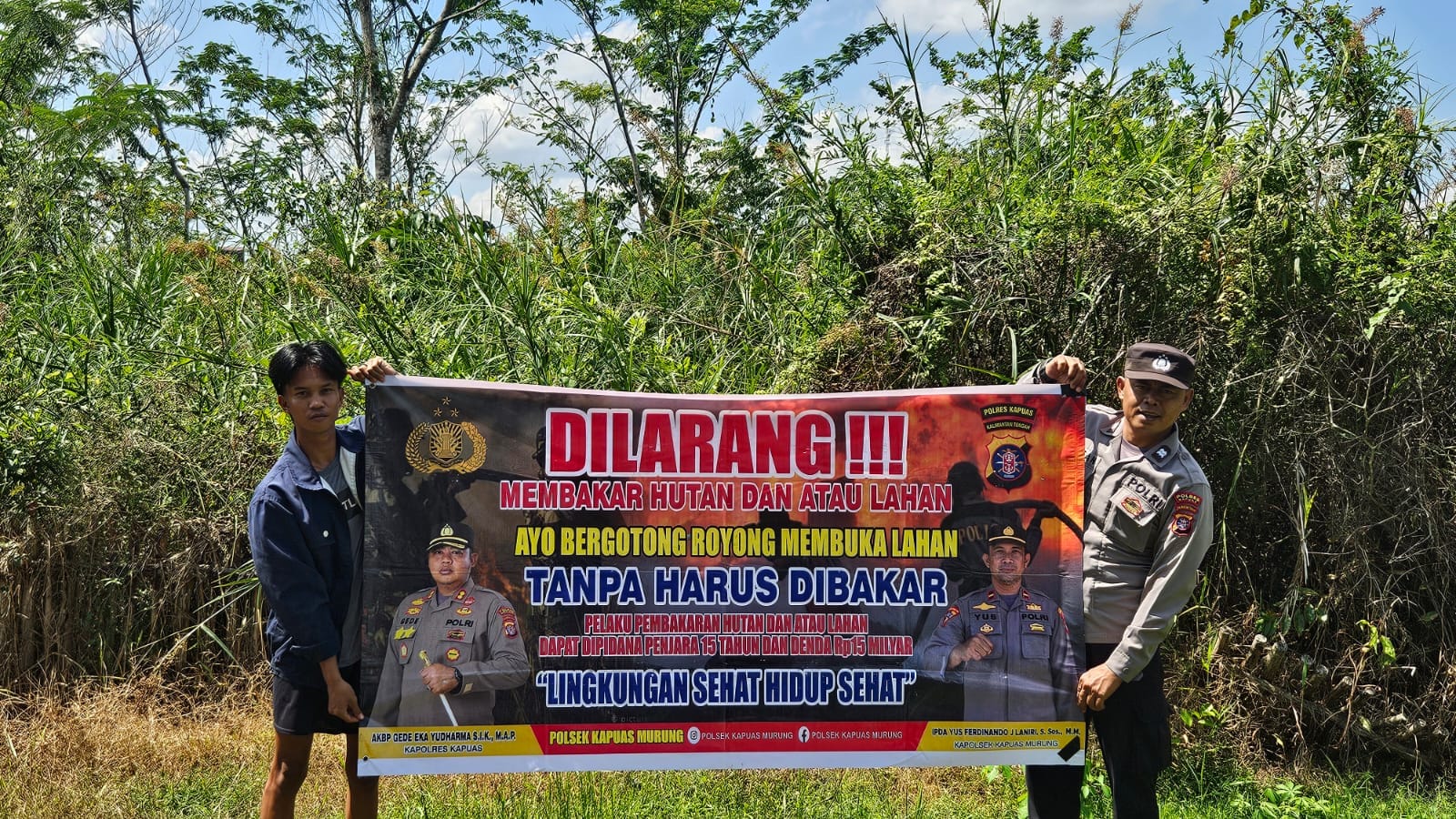 Bentang Sepanduk Larangan Membakar Hutan Dan Lahan Personil Polsek Kapuas Murung Melalui Giat Sosialisasi Karhutla