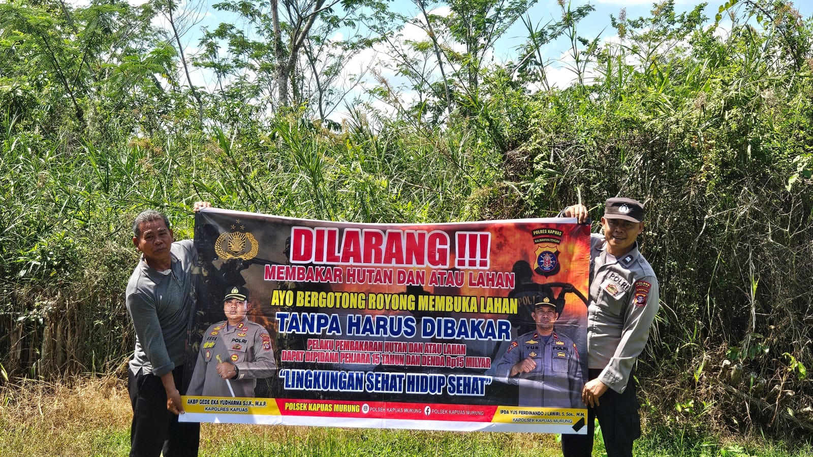 Bentang Sepanduk Larangan Membakar Hutan Dan Lahan Personil Polsek Kapuas Murung Melalui Giat Sosialisasi Karhutla