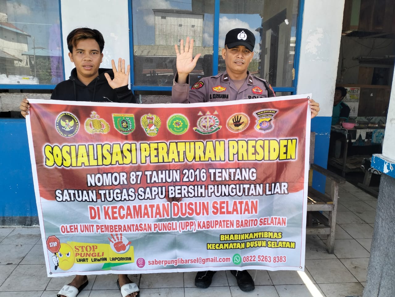 Kegiatan Sosialisasi peraturan Presiden nomor 87 tahun 2016 tentang satuan tugas sapu bersih pungutan liar (Satgas Saber Pungli) terus dilaksanakan oleh Satgas Saber Pungli Polsek Dusel dengan terus menyambangi perkantoran yang memiliki jasa pelayanan masyarakat untuk memberikan sosialisasi dan edukasi.