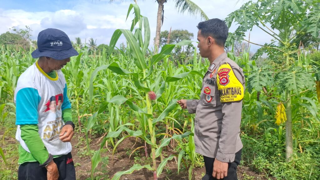 Dalam kesempatan tersebut bahwa dan Bhabinkamtibmas Polsek Anyar Polres Cilegon Polda Banten Bripka Pansa bersama Kelompok Tani Desa Tambang AyamKec. Anyar Kab Serang Monitoring dan Pedampingan kegiatan Poktan di wilayahnya lahan yang sedang ditanami Tanaman Jagung.