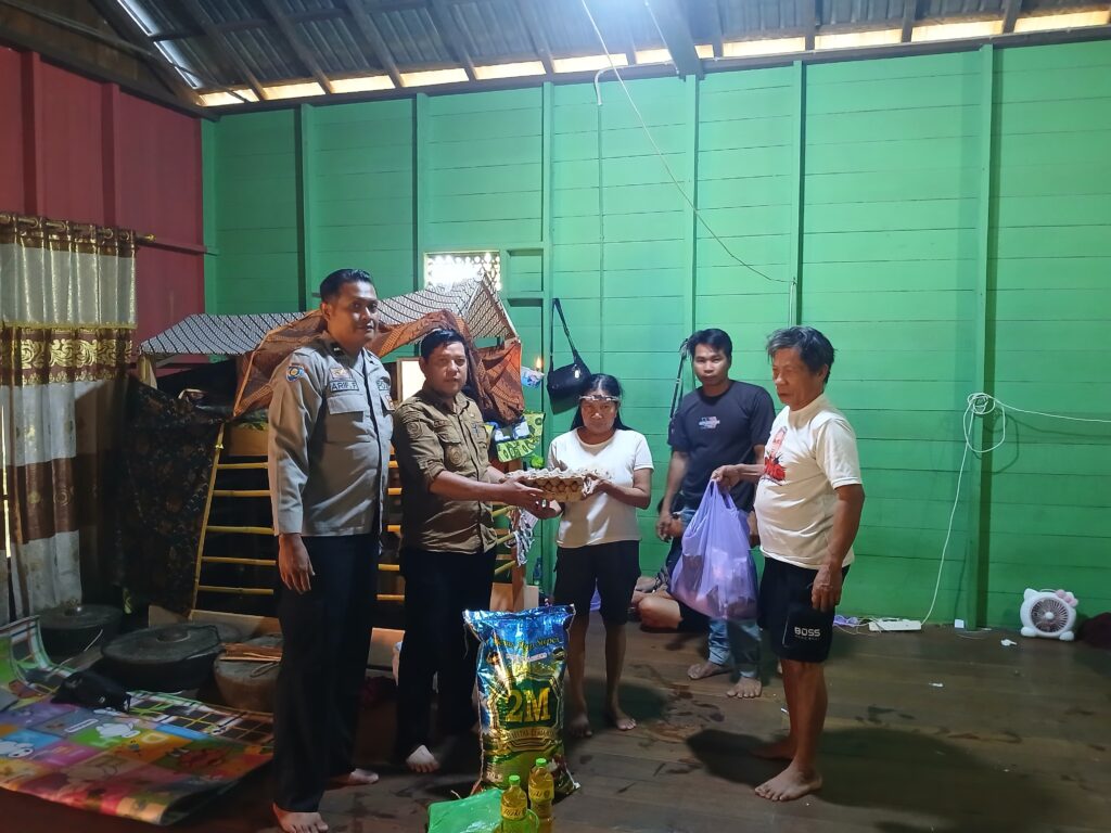 Puruk Cahu – Camat Tamah Siang Selatan Andreas, S.E. didampingi Bhabinkamtibmas Ipda Arif Firmansyah turun langsung menyalurkan bantuan sembako kepada warga yang terdampak banjir di Desa Dirung Lingkin, Kecamatan Tanah Siang Selatan, Sabtu (6/12/2025).