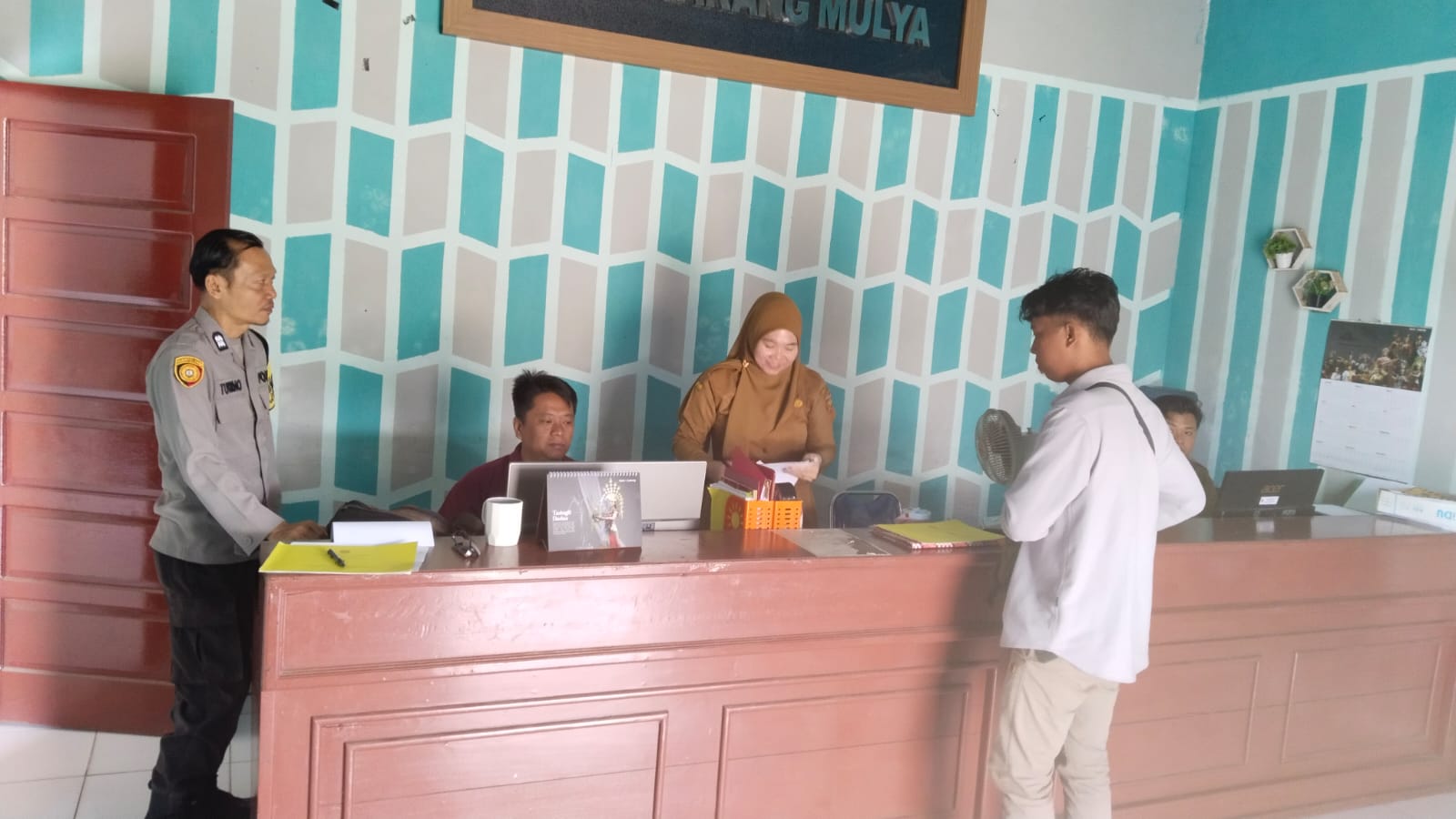 Bhabinkamtibmas Karang Mulya Sambangi Kantor Desa, Jaga Kondusifitas Lingkungan