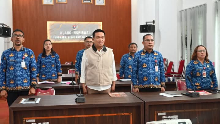 Bupati Humbang Hasundutan Dr. Oloan Paniaran Nababan, SH, MH mengikuti kegiatan Entry Meeting atas Pemeriksaan Laporan Keuangan Pemerintah Daerah (LKPD) Tahun 2025 melalui Video Conference (Vidcon) yang diselenggarakan oleh Badan Pemeriksa Keuangan (BPK) Republik Indonesia, Kamis, 2 April 2026.