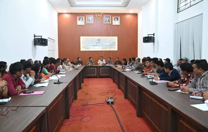 Bupati Humbang Hasundutan Dr. Oloan Paniaran Nababan, SH., MH memimpin rapat koordinasi membahas terbitnya Peraturan Menteri Keuangan (PMK) Nomor 81 Tahun 2025 yang berdampak pada pembatalan pencairan Dana Desa Non Earmark Tahap II Tahun Anggaran 2025 yang berlangsung di Ruang Rapat Setdakab Humbang Hasundutan. Jumat, (5/12).