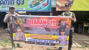“Mari kita bersama-sama menjaga kelestarian hutan dan lahan dengan tidak membakarnya karena dampak dari Karhutla menyebabkan timbulnya asap yang dapat mengganggu kesehatan, serta aktivitas masyarakat lainnya dan sudah ada sanksi bagi pelaku yang sengaja membakar hutan dan lahan,” ujar Kapolsek