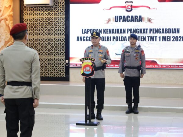 Serang, Analismews.co.id — Kapolda Banten Irjen Pol. Hengki memimpin langsung upacara kenaikan pangkat pengabdian dari AKBP ke Kombes Pol