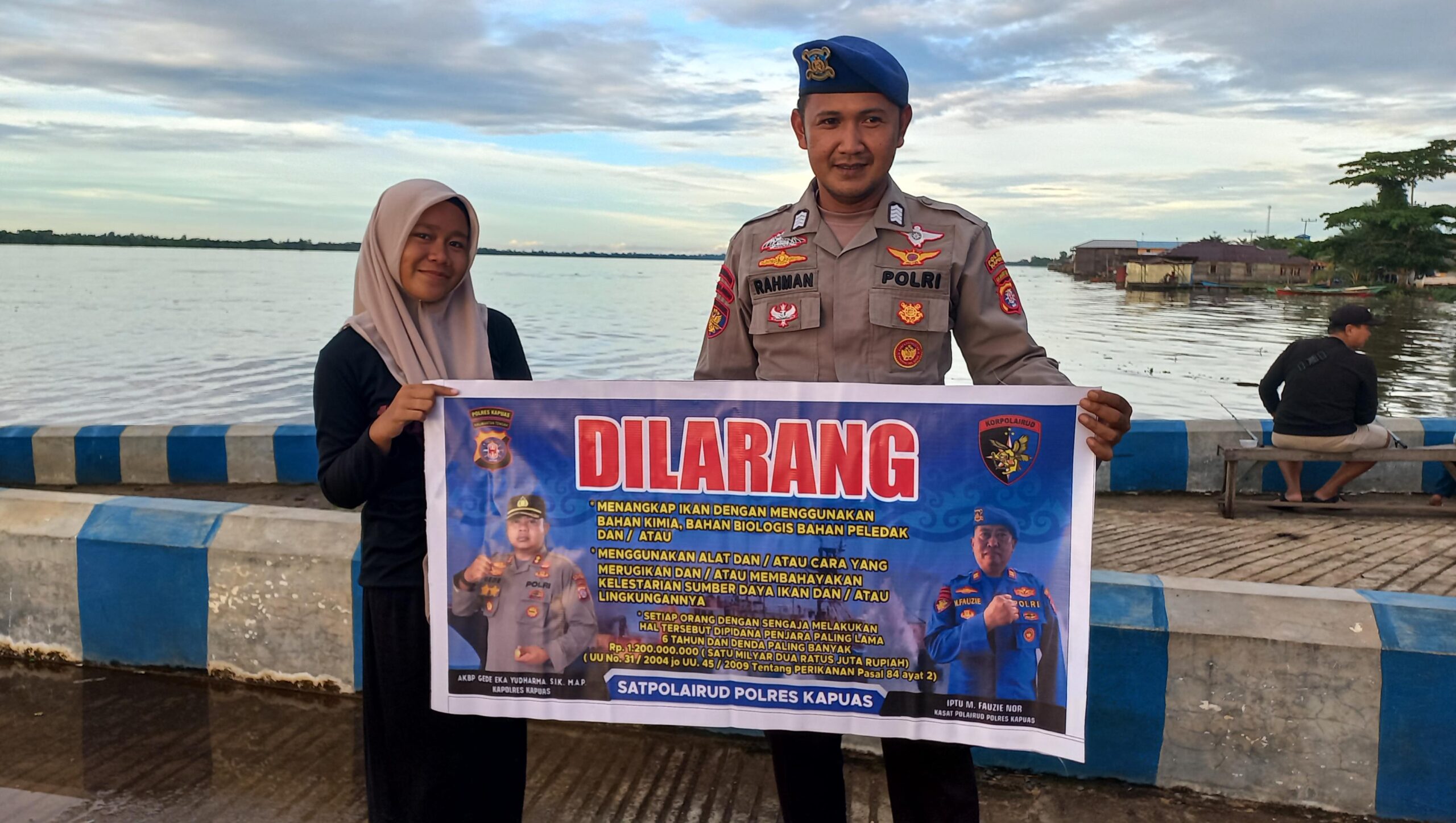 Satpolairud Polres Kapuas Jajaran Polda Kalteng menegaskan kepada warga Pesisir DAS Kapuas yang menangkap ikan dengan cara menyetrum maupun menggunakan bahan kimia berbahaya, ada sanksi dan ancaman pidana menanti, Senin (13/4/26).