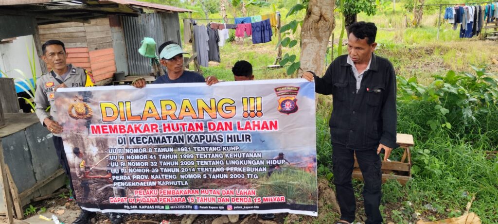 Polsek Kapuas Hilir_Polres Kapuas Jajaran Polda Kalteng terus berupaya mencegah terjadinya kebakaran hutan dan lahan dengan rutin menyampaikan Himbauan Kamtibmas serta mengimbau kepada seluruh warganya untuk tidak membakar hutan dan lahan, baik pada saat musim kemarau ataupun musim penghujan di wilayah hukum Polsek Kapuas Hilir Kec.Kapuas Hilir Kab.Kapuas Prov.Kalimantan Tengah,Sabtu (25/10/2025).