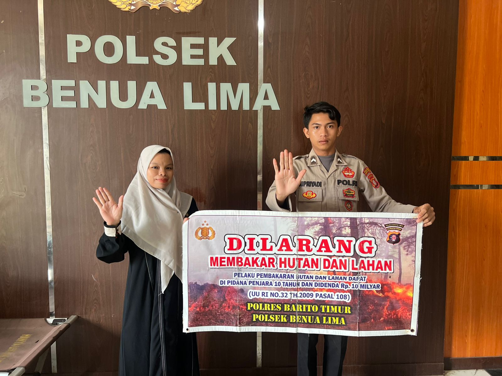Selain itu, personel Polsek Benua Lima juga mensosialisasikan sanksi pidana bagi para pelaku kebakaran hutan dan lahan sesuai dengan ketentuan peraturan perundang-undangan yang berlaku. Hal ini disampaikan sebagai langkah preventif agar masyarakat memahami konsekuensi hukum dari perbuatan karhutla dan semakin meningkatkan kesadaran hukum di lingkungan sekitar.