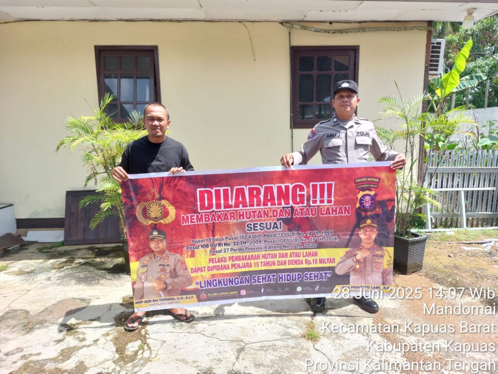 Guna mencegah terjadinya kebakaran hutan dan lahan (Karhutla), anggota personil Polsek Kapuas Barat Polda Kalimantan Tengah selalu ingatkan dan rutin memberikan sosialisasi masyarakat. Sabtu (28/06/2025).
