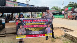 Tribratanews.kalteng.polri.go.id-Kapuas Hulu-Dalam upaya meningkatkan pencegahan dan penanggulangan penyalahgunaan narkoba, personel Polsek Kapuas Hulu Polres Kapuas jajaran PoldaKalteng Aipda Imanuel P. Nadeak dan Brigpol A. Pasaribu rutin melaksanakan sosialisasi telah melaksanakan imbauan melalui media spanduk bertuliskan “Stop Narkoba” di beberapa lokasi yang dianggap rawan tindak pidana narkoba. Bertempat di Desa Sei HanyoKecamatan Kapuas Hulu Kabupaten Kapuas Provinsi Kalimantan Tengah, Selasa (28/04/2026) pukul 12.00 WIB